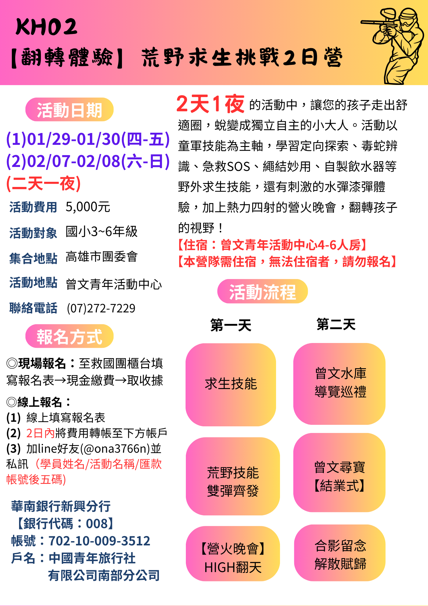 【高雄市救國團115年冬令營】KH02【翻轉體驗】荒野求生挑戰2日營