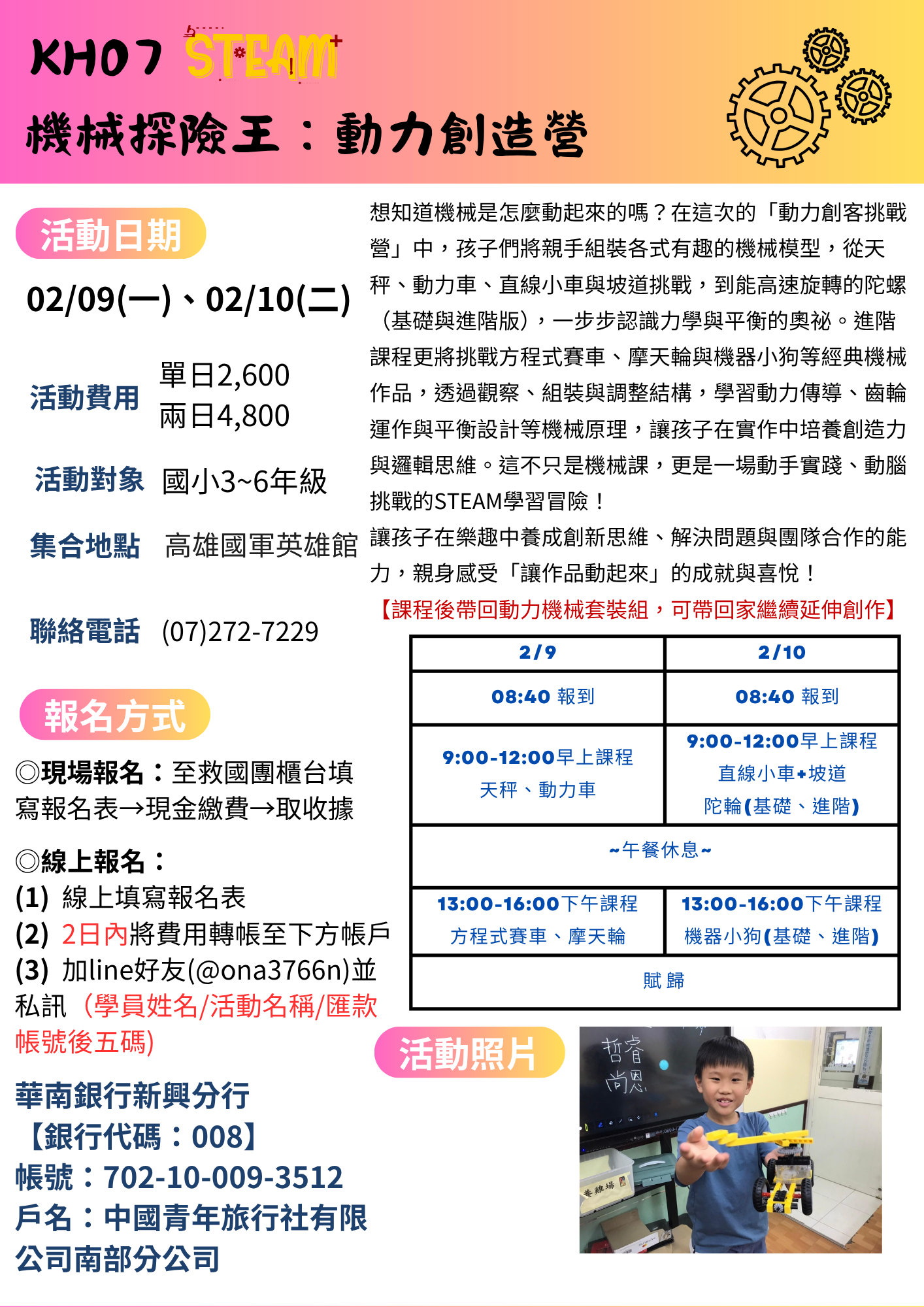 【高雄市救國團115年冬令營】KH07 機械探險王:動力創造營