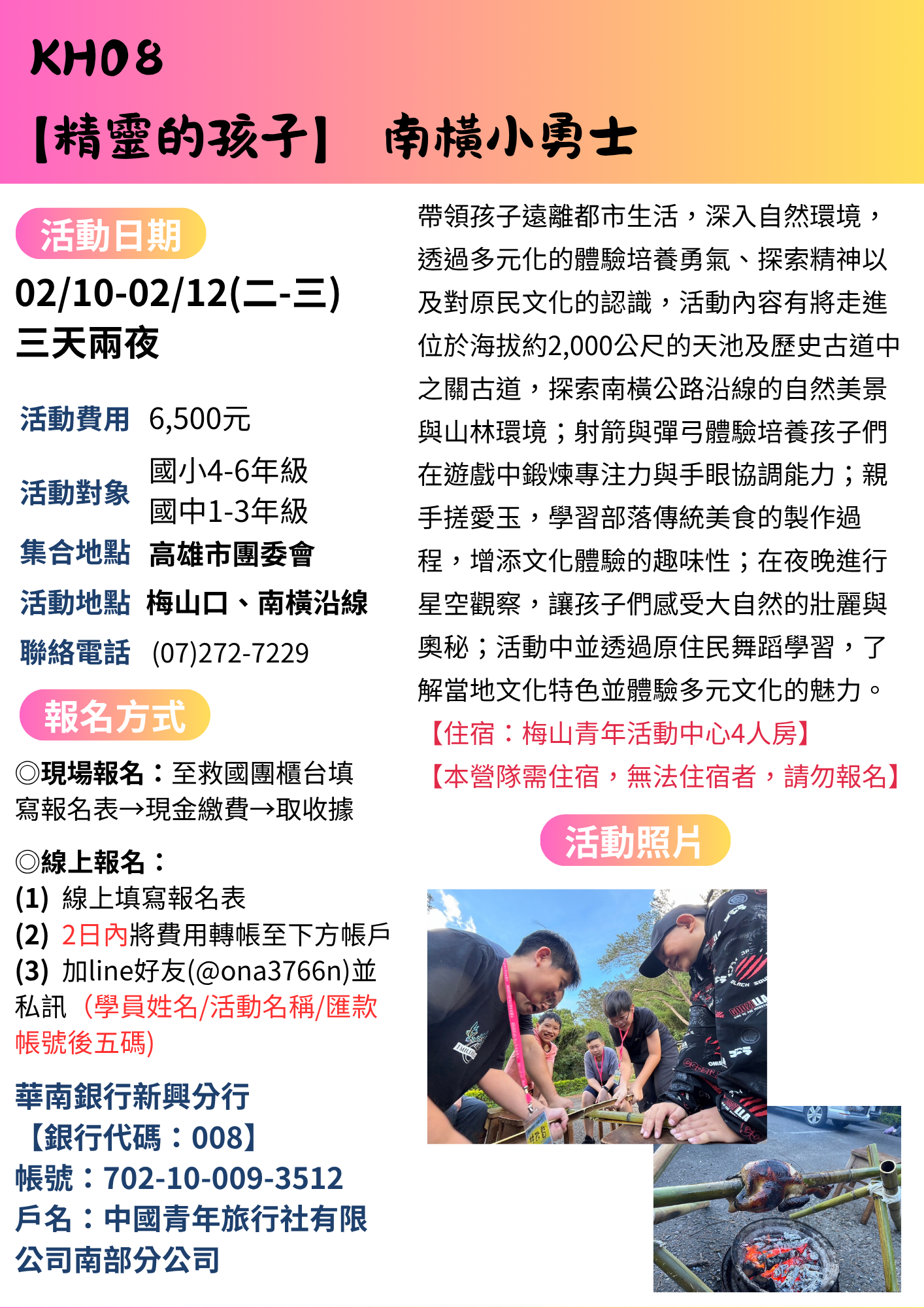 【高雄市救國團115年冬令營】KH08 南橫小勇士