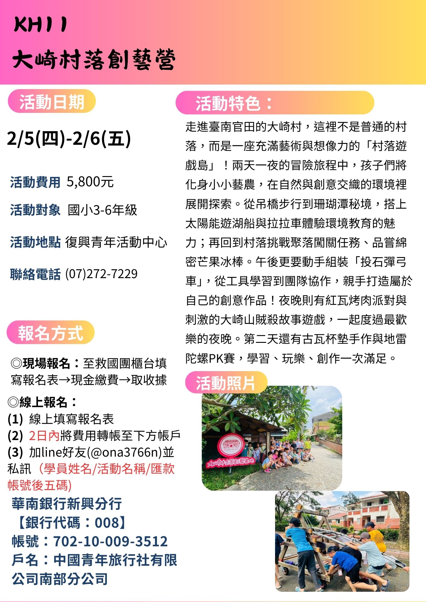 【高雄市救國團115年冬令營】KH11大崎村落創藝營