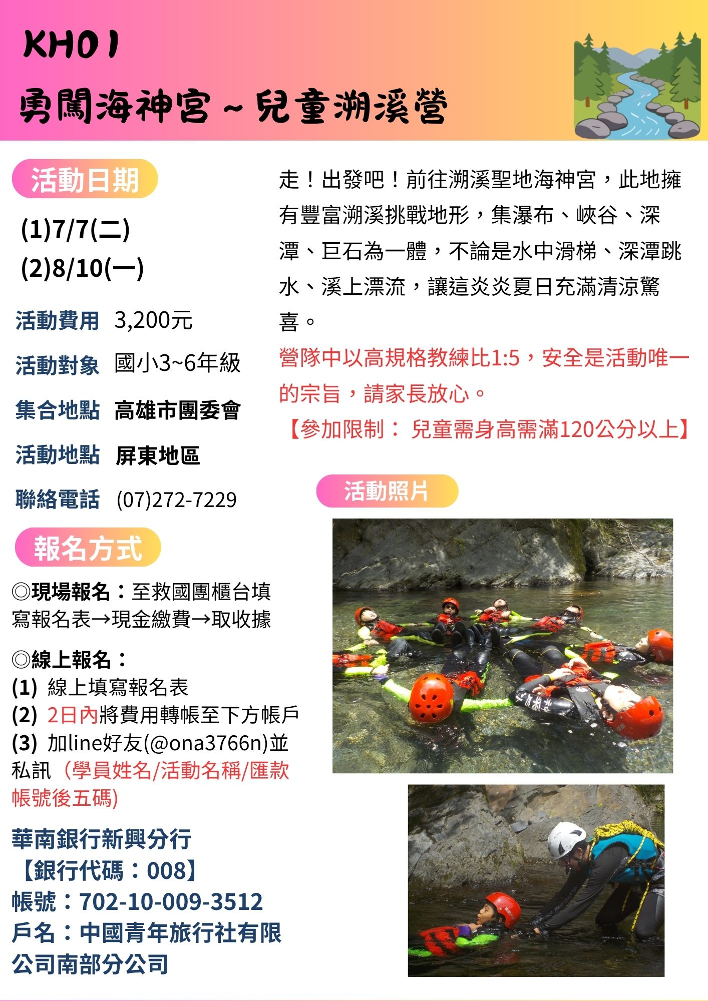 B【高雄市救國團115年夏令營】KH01【勇闖海神宮】兒童溯溪營