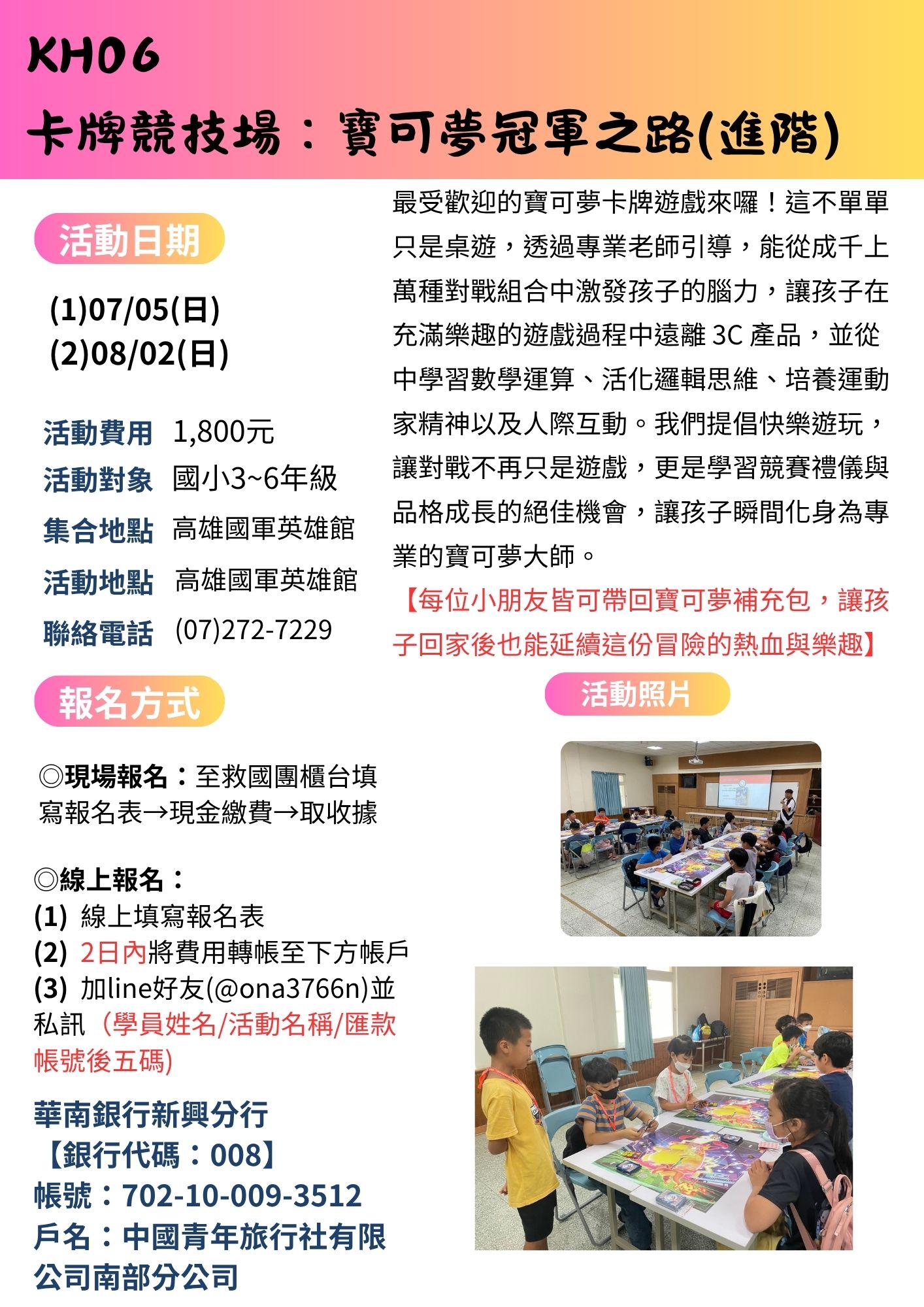 B【高雄市救國團115年夏令營】KH06 卡牌競技場:寶可夢冠軍之路(進階)