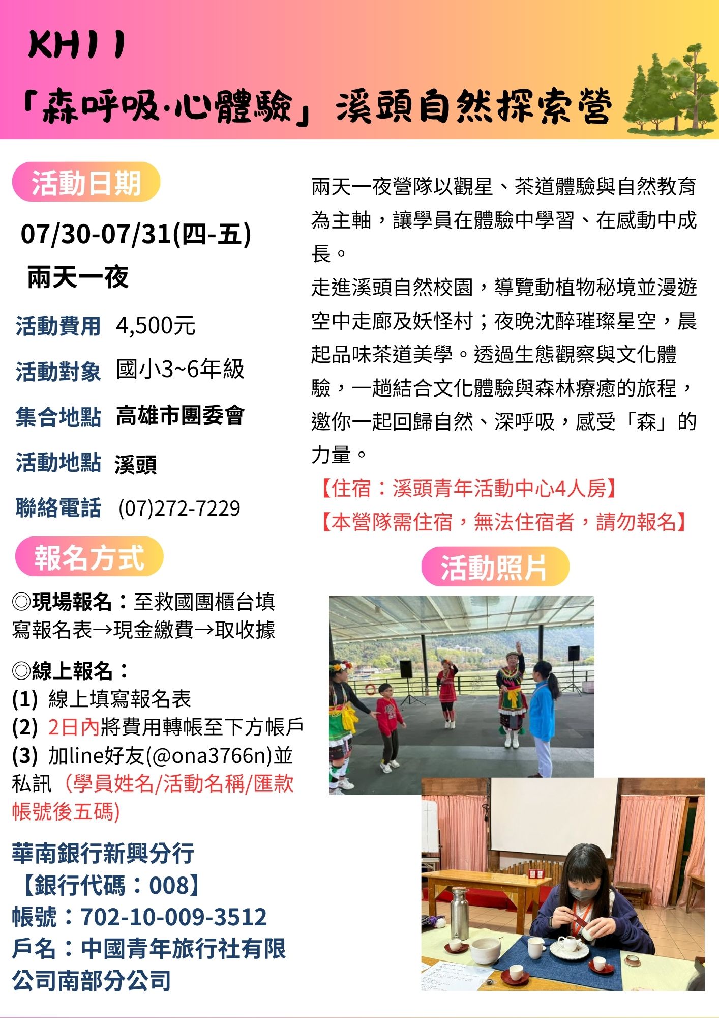 B【高雄市救國團115年夏令營】KH11「森呼吸‧心體驗」溪頭自然探索營