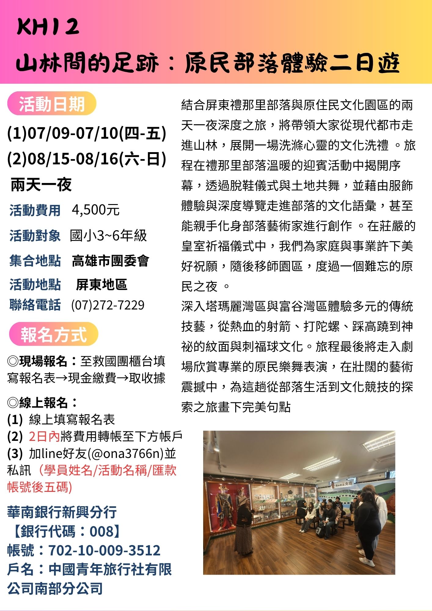 B【高雄市救國團115年夏令營】KH12山林間的足跡:原民部落體驗二日遊