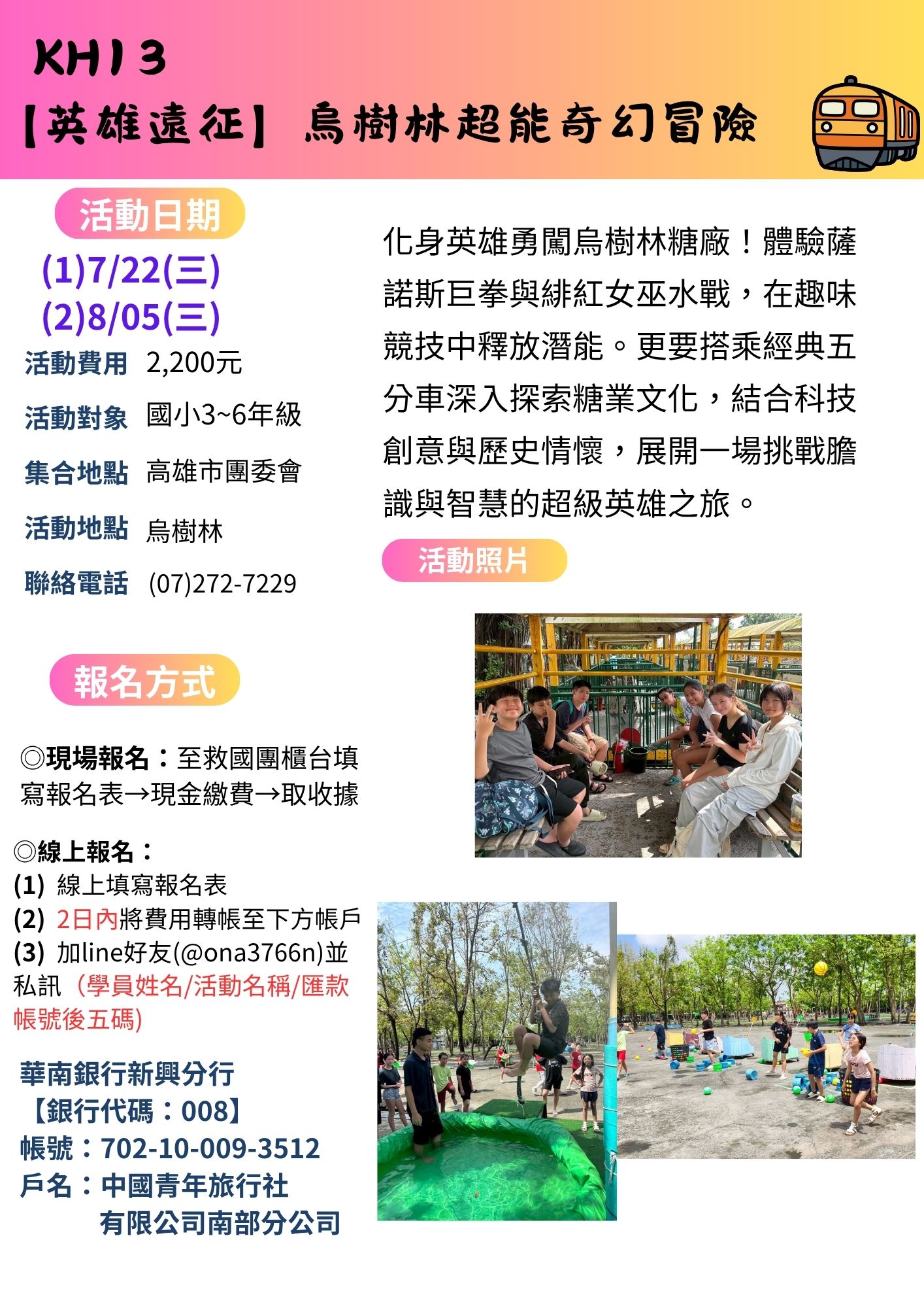B【高雄市救國團115年夏令營】KH13【英雄遠征】烏樹林超能奇幻冒險