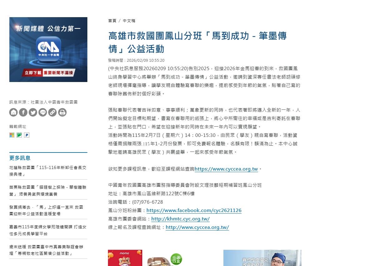 救國團鳳山終身學習中心115年【馬到成功~筆墨傳情】體驗公益活動