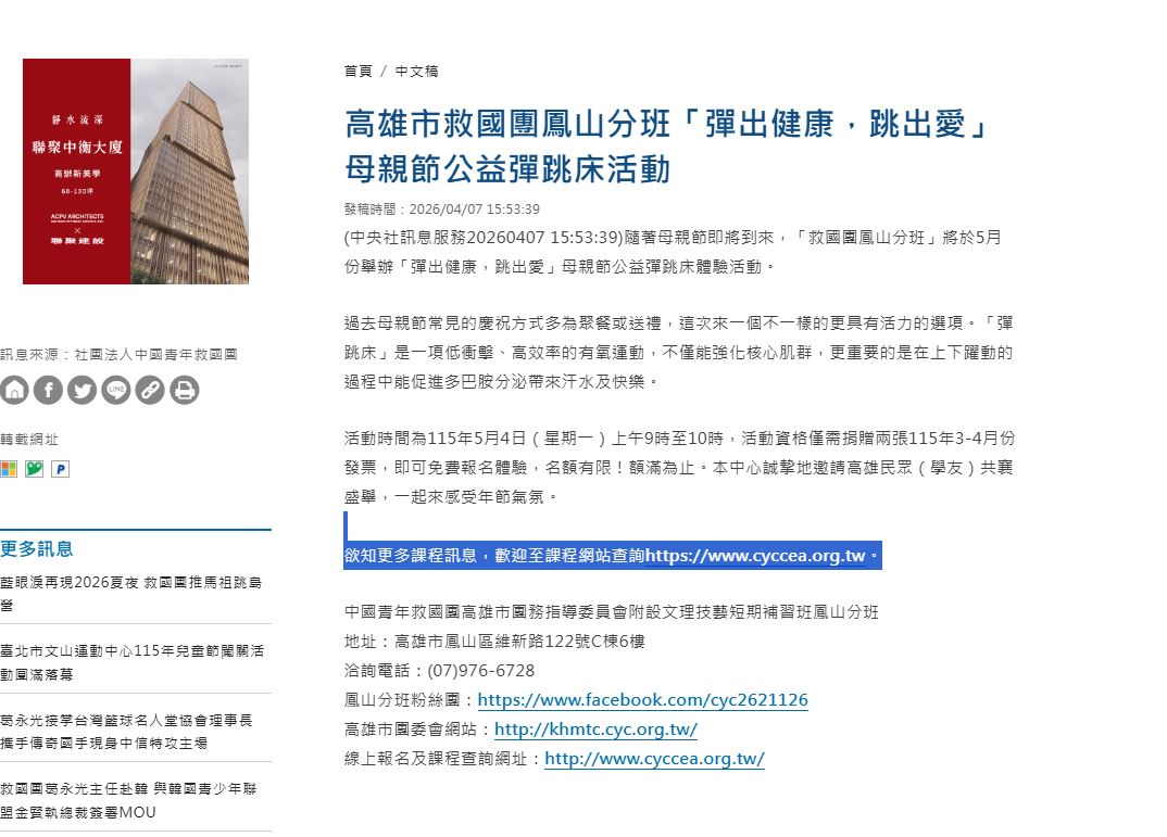 救国团凤山终身学习中心115年『弹出健康,跳出爱』母亲节体验公益活动
