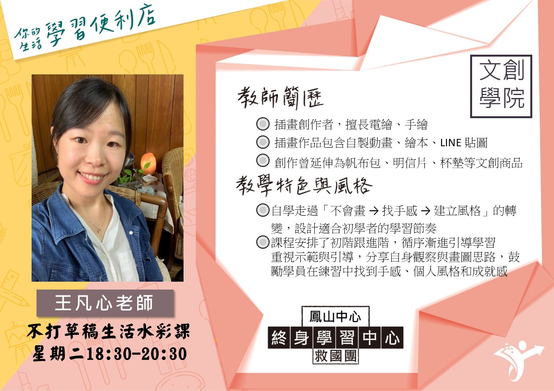 【救国团教师简歷介绍】凤山分班114-6期优质教师-王凡心老师