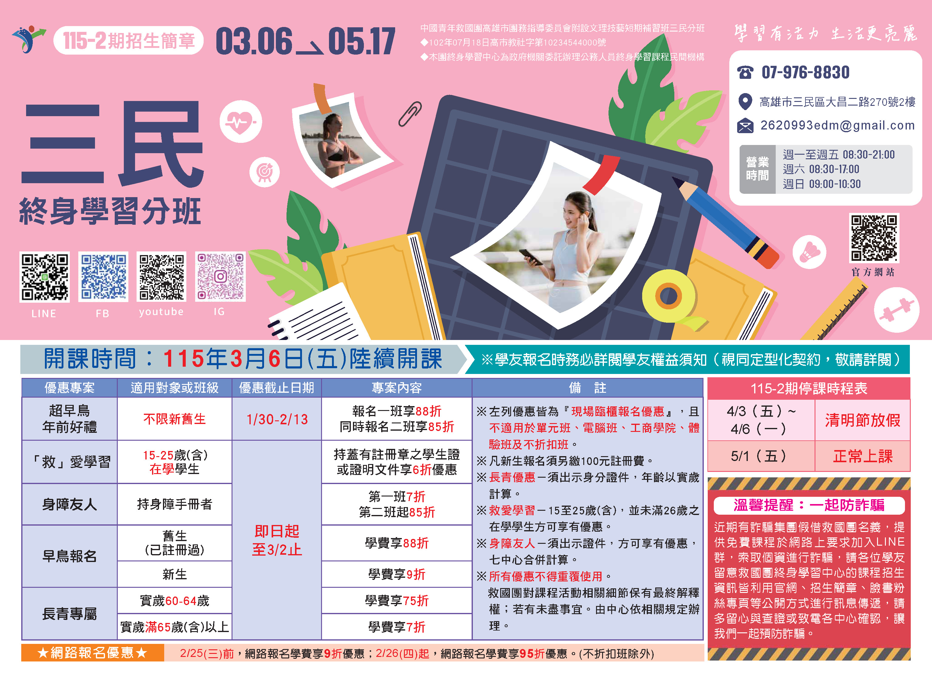 高雄市救国团三民分班【115-2期(3-4月)课程简章】