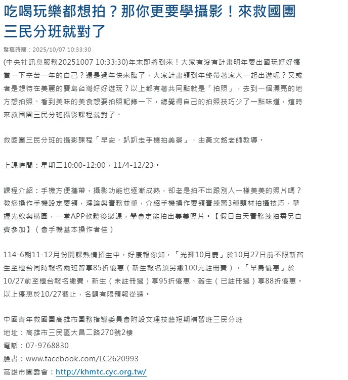 吃喝玩乐都想拍?那你更要学摄影!来救国团三民分班就对了