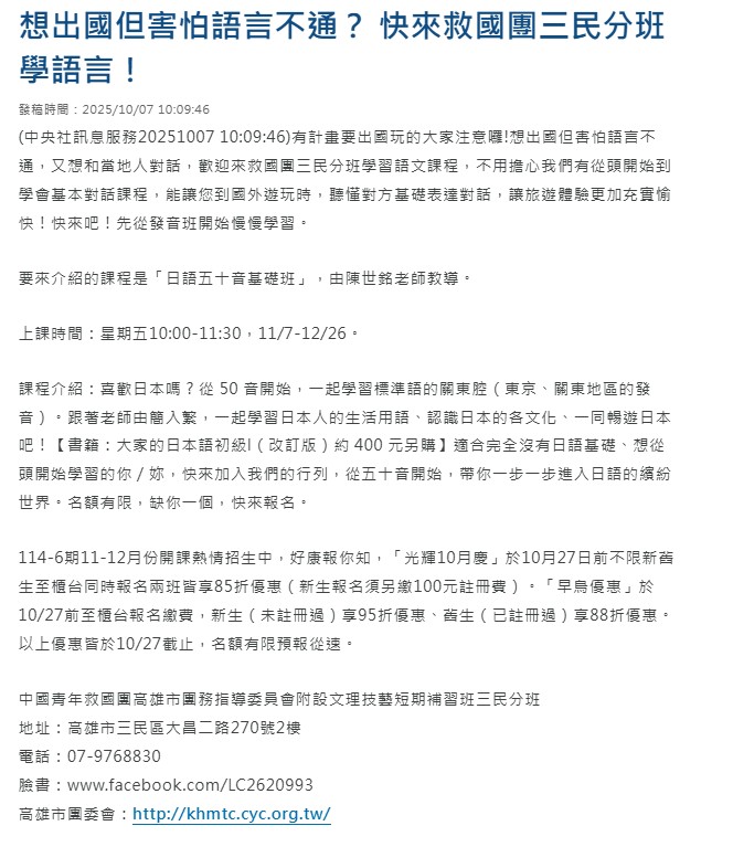 想出国但害怕语言不通? 快来救国团三民分班学语言!