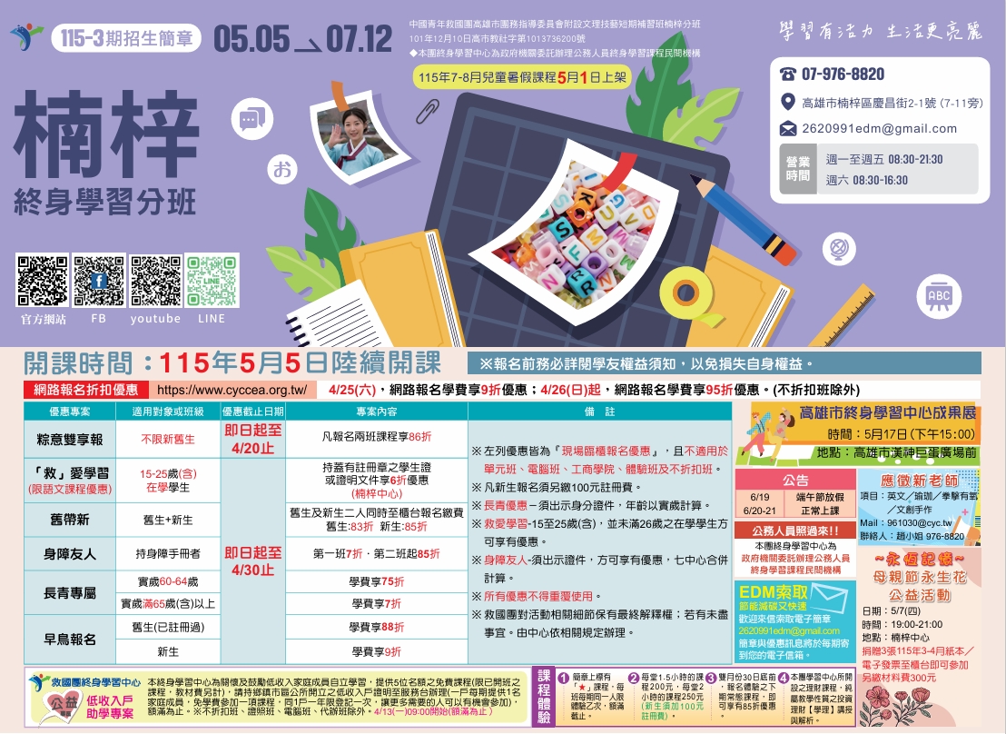 高雄市救国团楠梓分班【115-3期(5-6月)课程简章】
