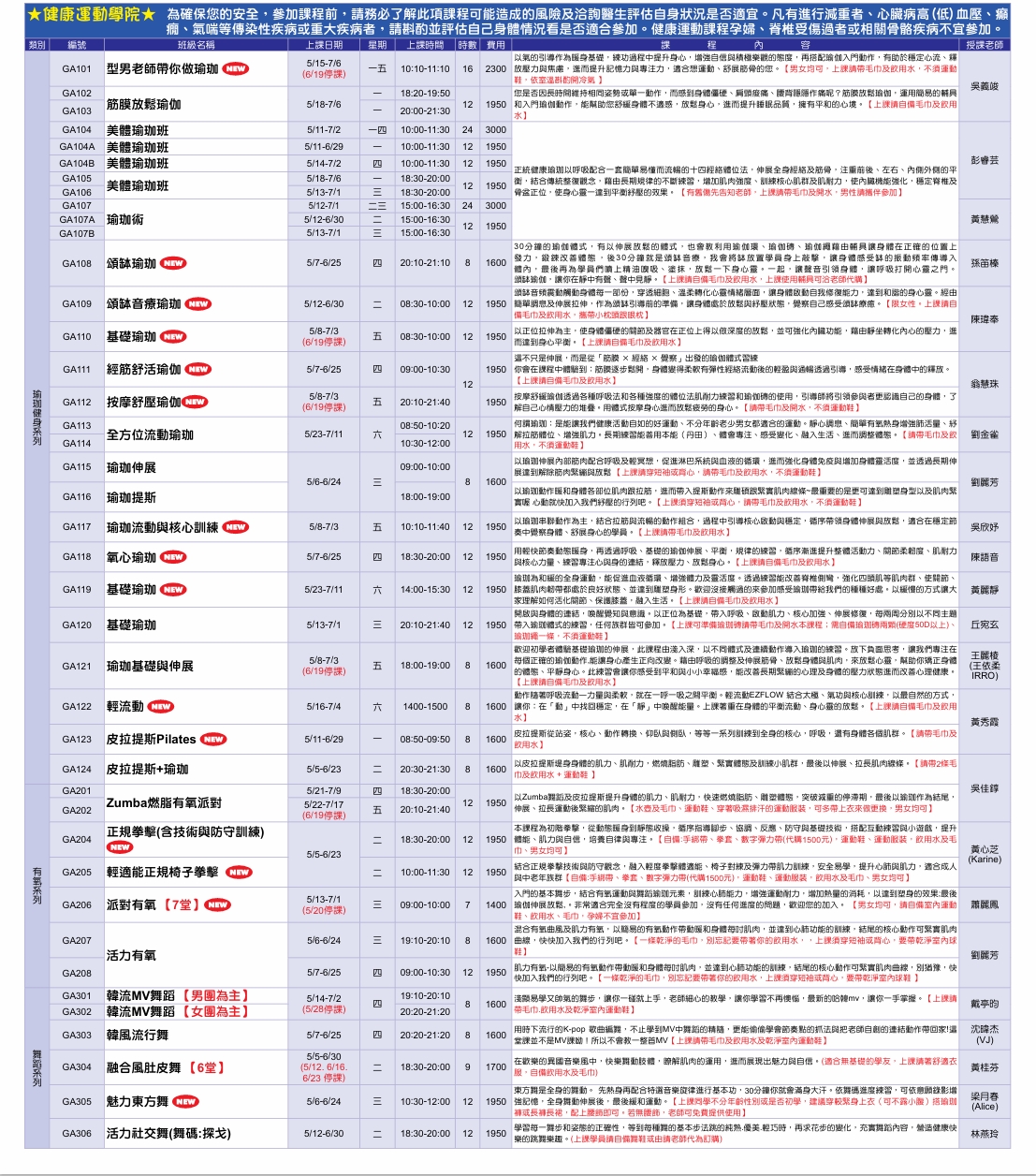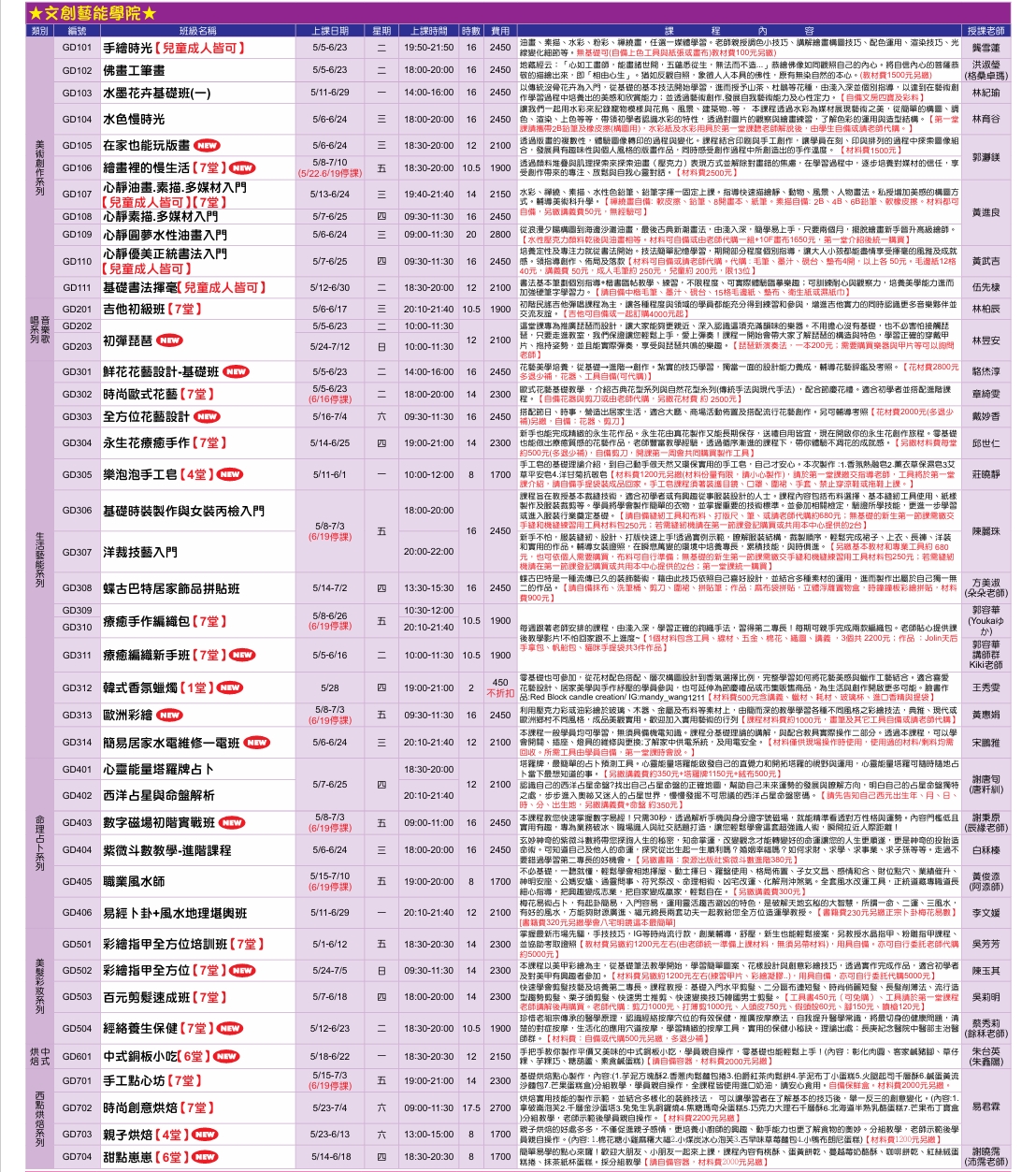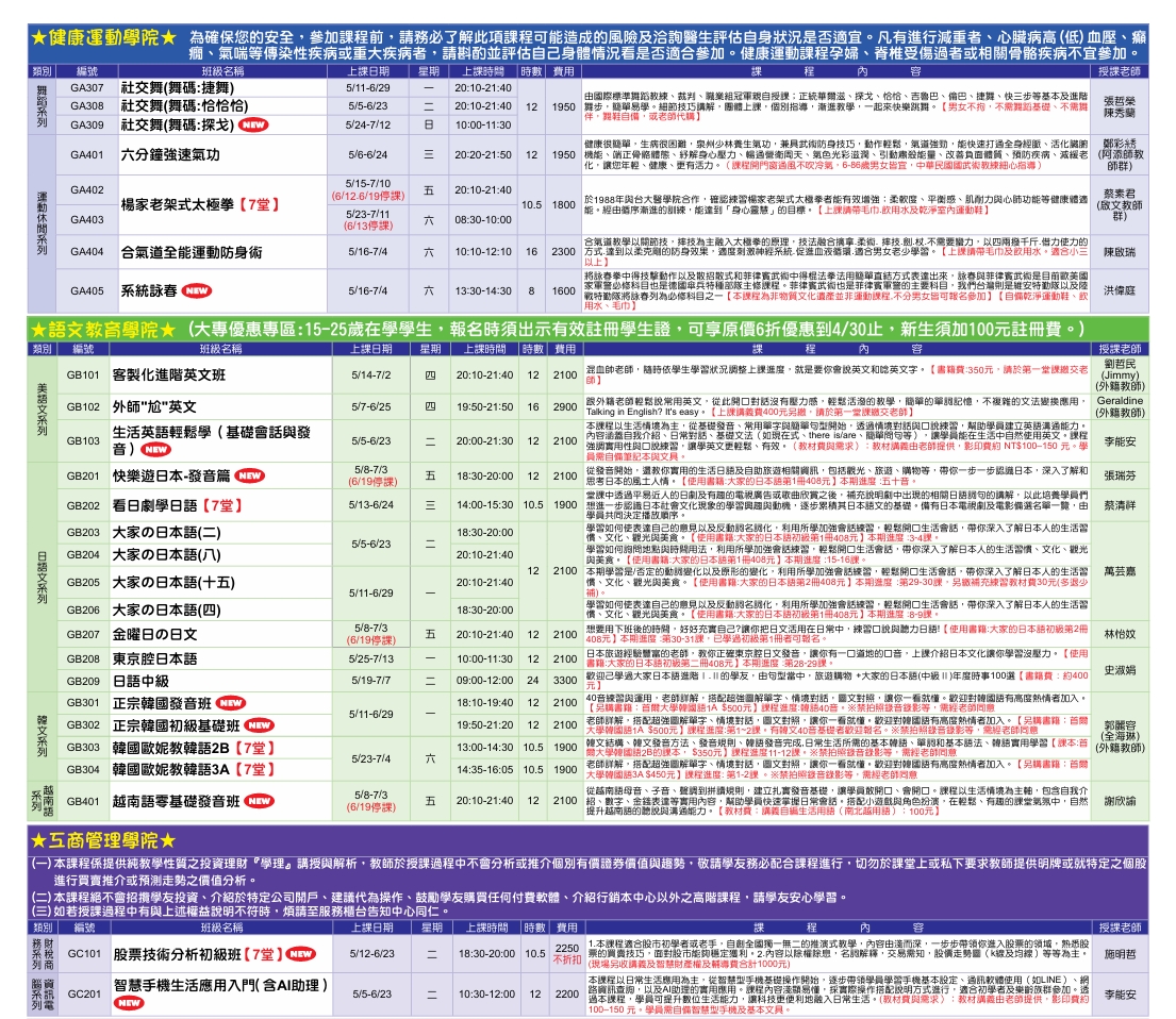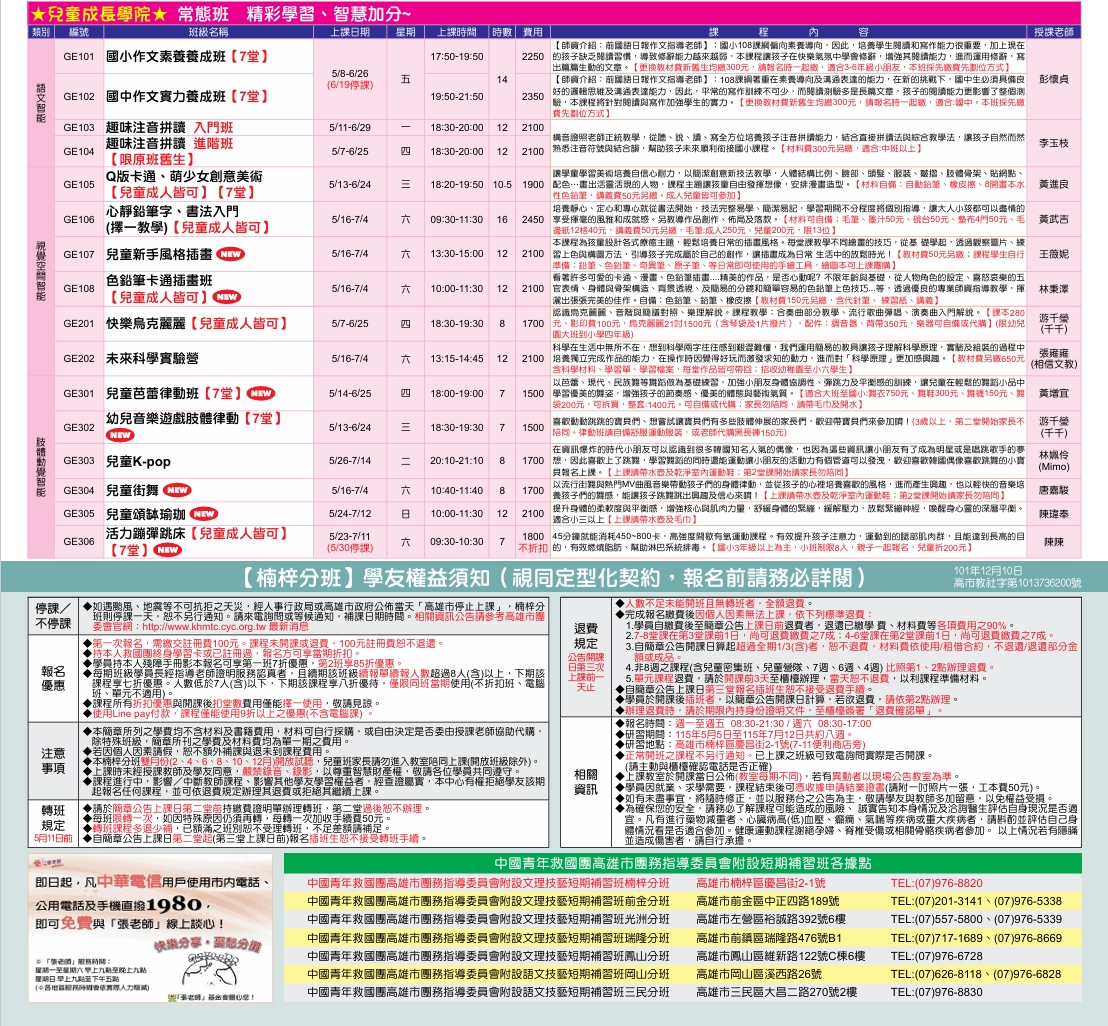 楠梓中心115-3期5-6月课程简章