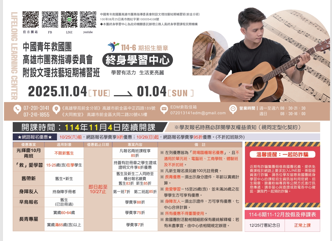 高雄市救国团高雄学苑【114-6期(11-12月)课程简章】