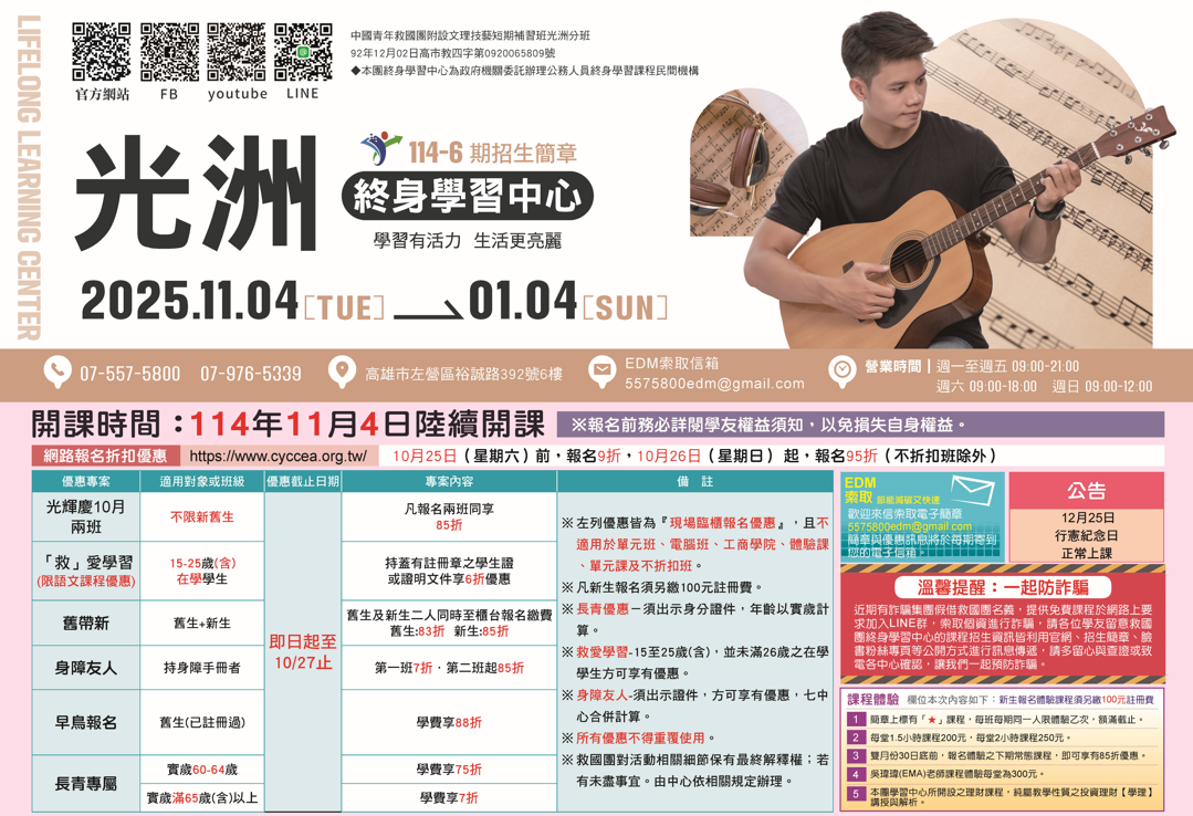 高雄市救國團光洲分班【114-6期(11-12月)課程簡章】