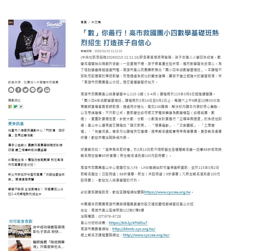 【救國團課程訊息】115-2期(3-4月)救國團鳳山中心~「數」你最行!小四數學基礎班熱烈招生,打造孩子自信心