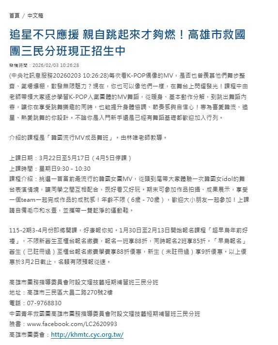 救國團三民終身學習中心115年第2期 追星不只應援,親自跳起來才夠燃!救國團三民分班現正招生中