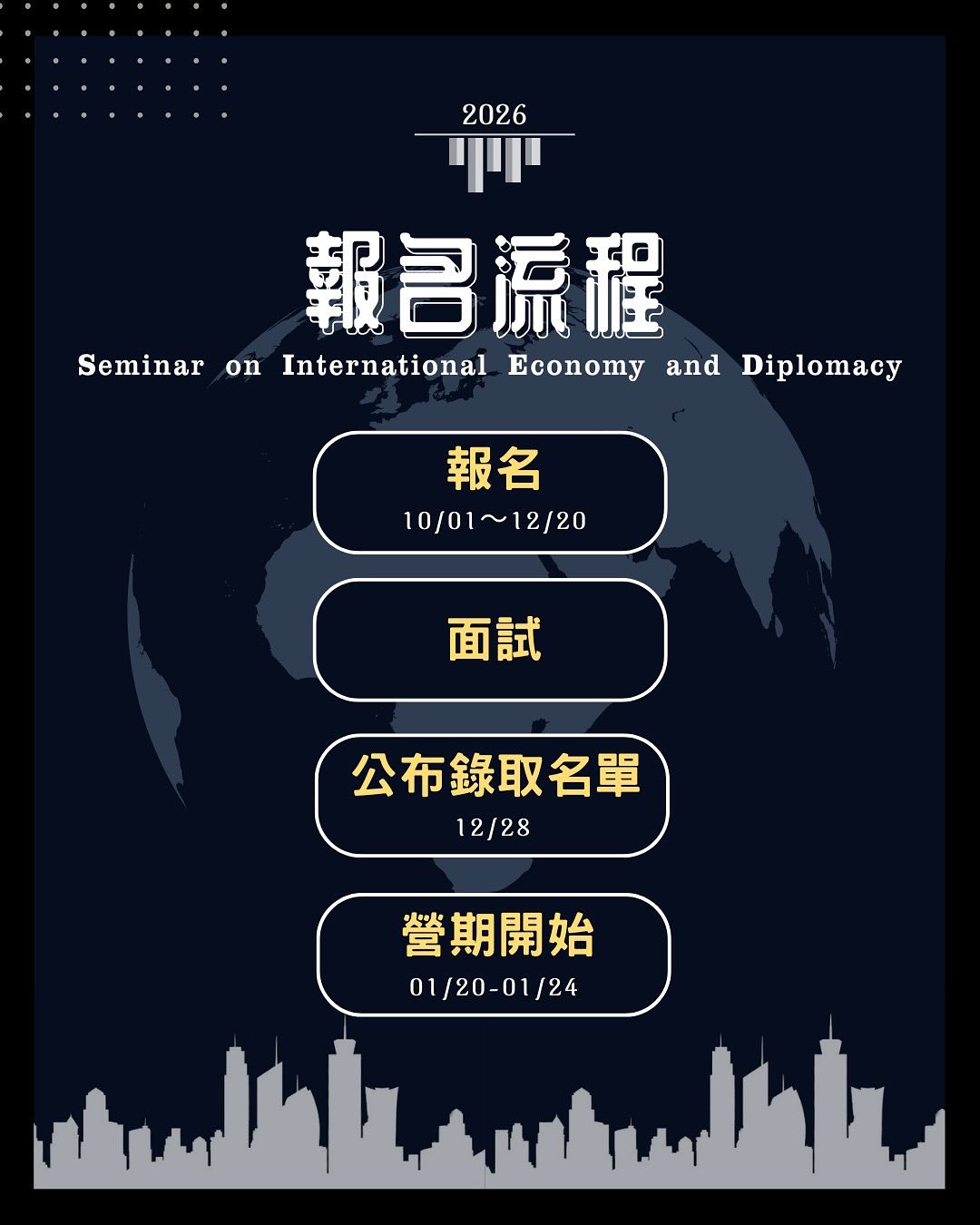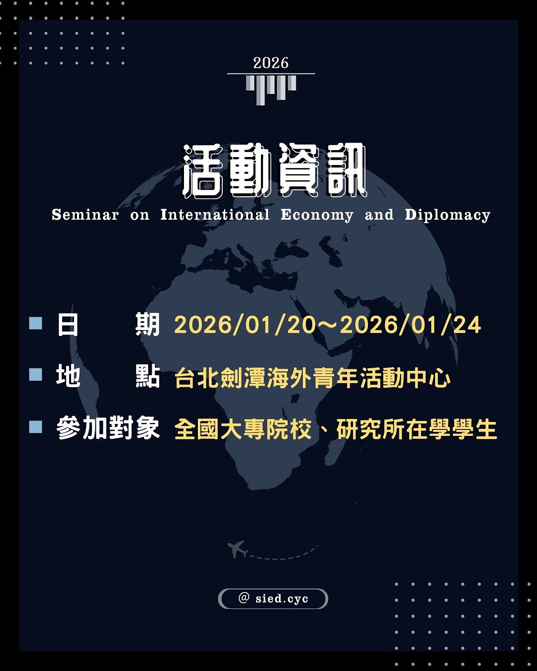 對經貿暨外交事務有濃烈興趣的國內外大專校院及研究所在學學生。